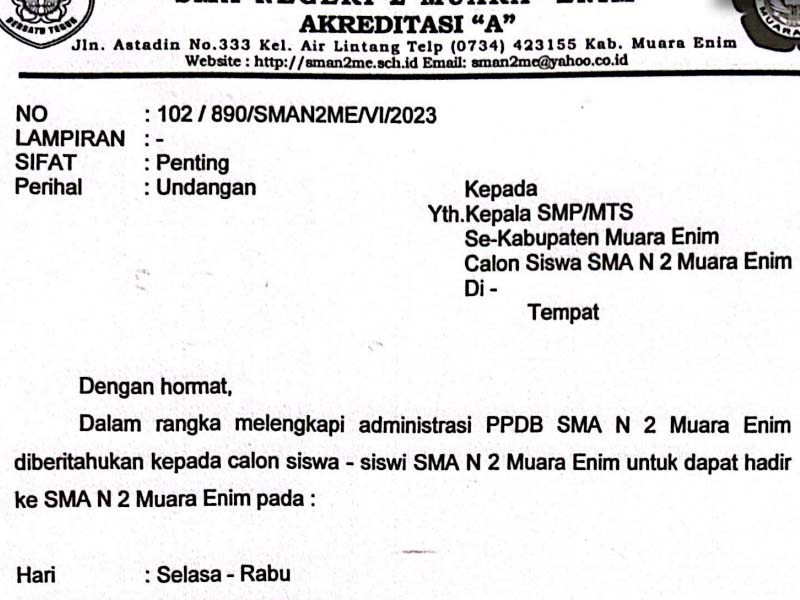 Undangan dan Jadwal Tes Wawancara Calon siswa SMAN 2 Muara Enim