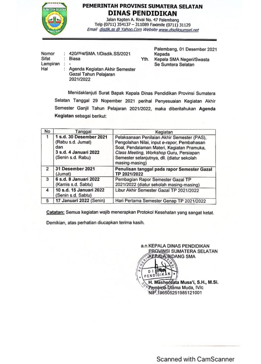Agenda kegiatan Akhir Semester Gazal Tahun Pelajaran 2021/2022