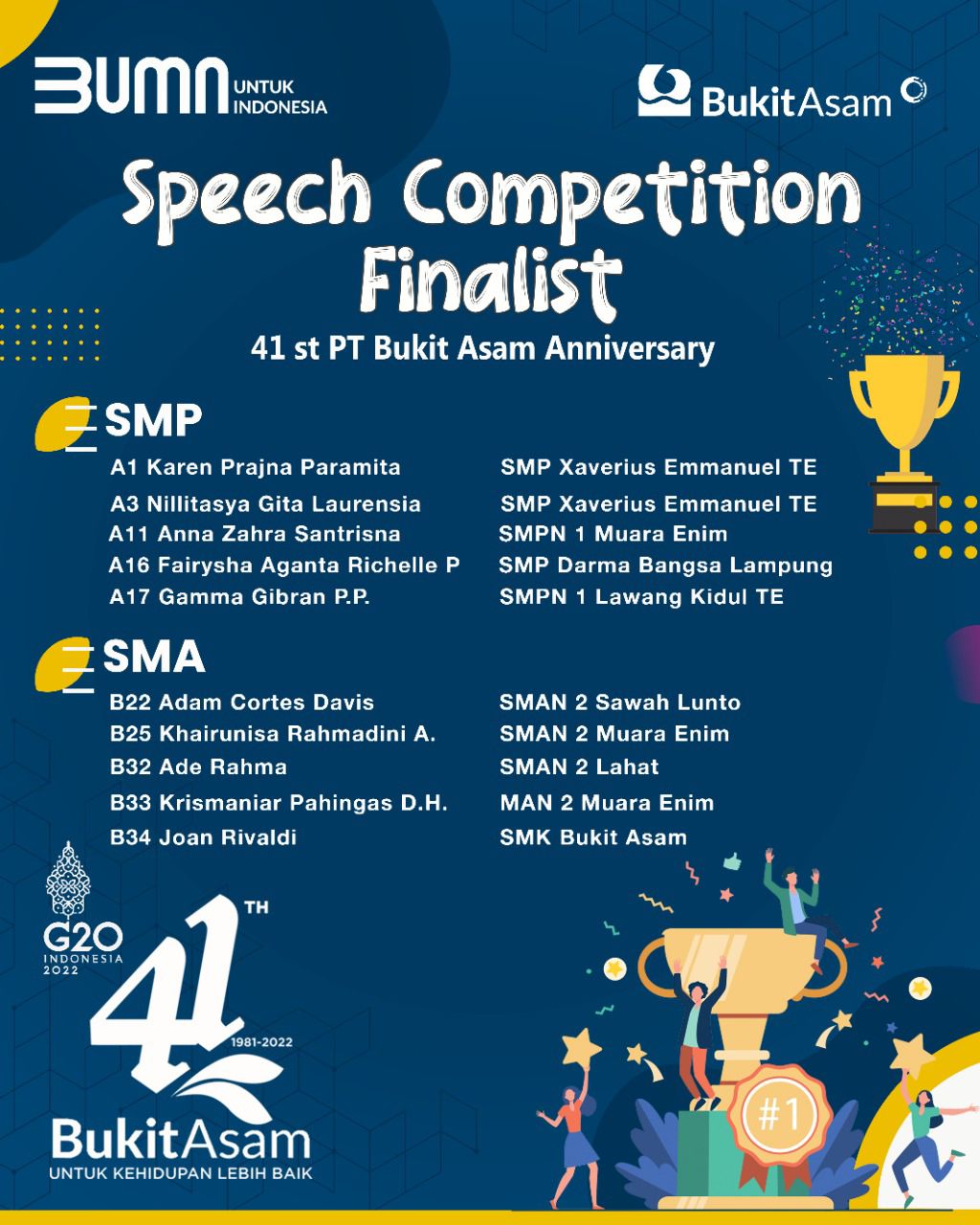 Speech Competition Finalist 41 st PT Bukit Asam Anniversary